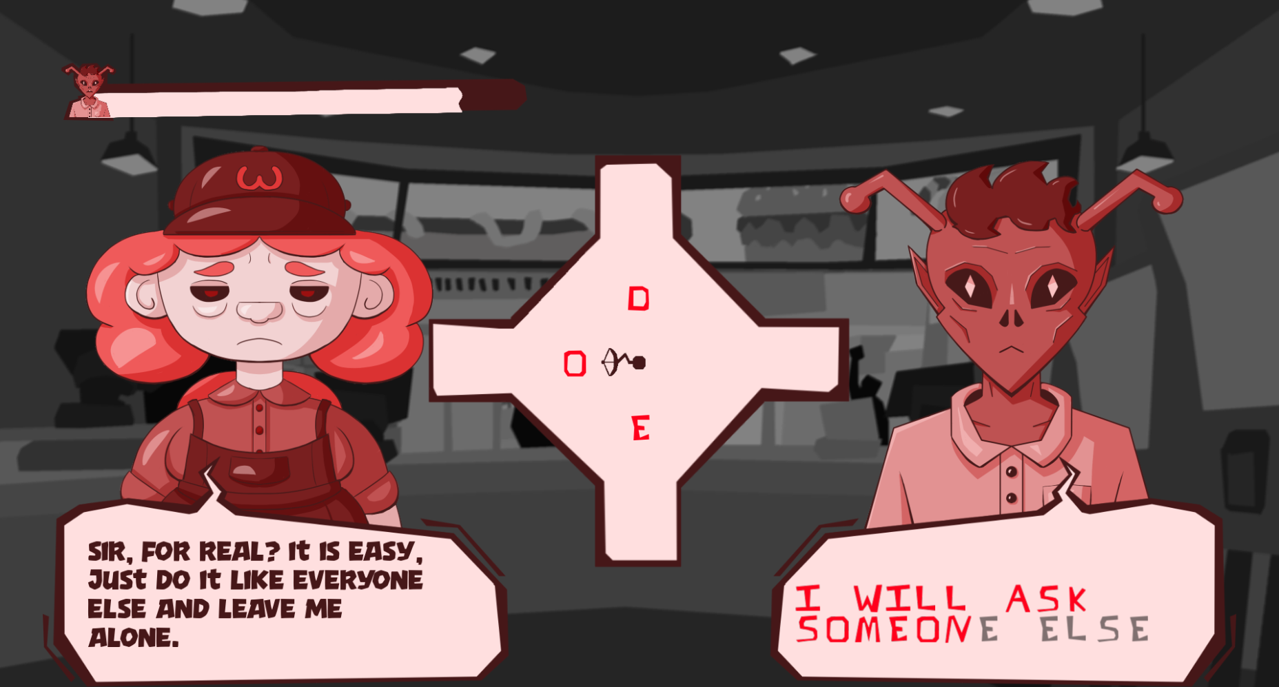 You are Bibibloop, an alien on a mission: life a regular human life. But that's not an easy task, and the difficulty starts right at the beginnging: speaking.